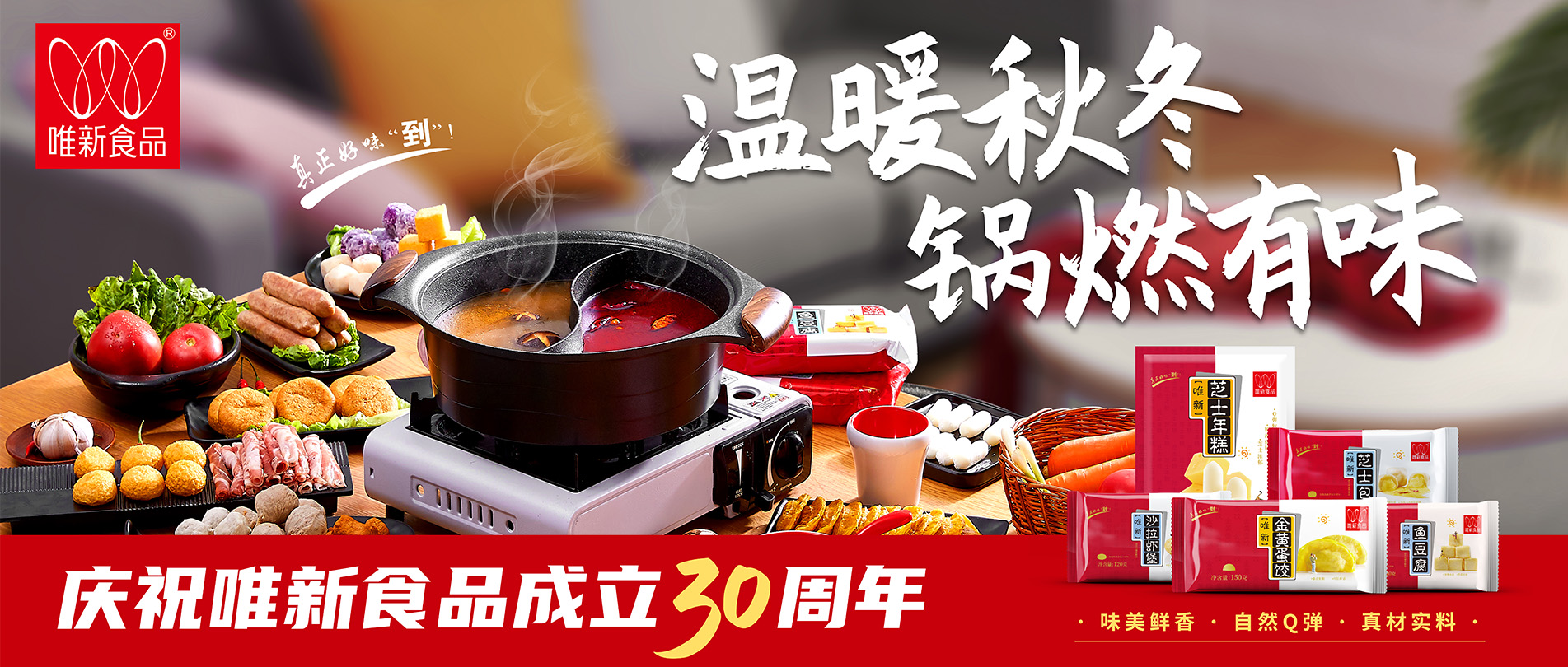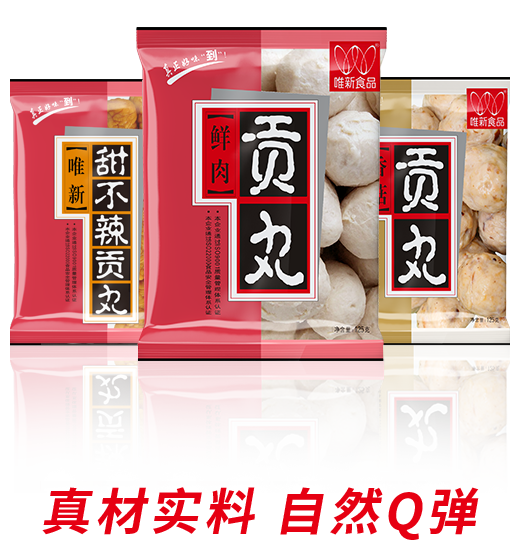選擇蛋白質(zhì)含量及新鮮度高的豬后腿肉為原料,模擬手工捶打的打漿工藝,再經(jīng)煮制、冷卻、速凍工藝才可生產(chǎn)出自然脆彈的唯新貢丸,是居家佐餐、火鍋的美味食品。近年來我們還研發(fā)生產(chǎn)了香腸、蝦滑、魚丸、牛肉丸等大眾喜愛的家庭火鍋料速凍食品。